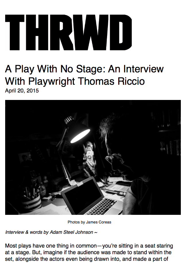 I find myself increasingly applauding artists whose work creates a vibrant experience that isn’t easy to categorize, those responsible for creating art that happens in between specific media or practices. I also gravitate toward an artist capable of creating a self-contained world, a feat not to be undervalued. That being said, I have a great admiration for the work of Thomas Riccio, a cross-disciplinary artist who has recently become better known for his work in performance and theater, although he is equally at home in the gallery.
